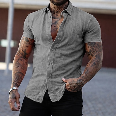 Per uomo Camicia Camicia casual Camicia con Bottoni Camicia 100% cotone lavaggio acido Camicia lavata con acido Nero Rosa Blu marino Viola Verde Manica Corta Semplice Colletto a Camicia Casuale