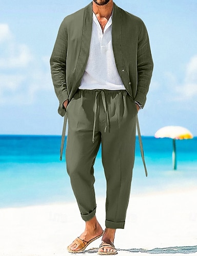 Per uomo Camicia Camicia di lino Abbigliamento da spiaggia Camicia con Bottoni Camicia con cappuccio Semplice Vacanza Casuale Bianco Blu Verde militare Grigio Manica Lunga Con Cappuccio Estate
