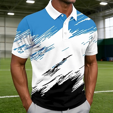 Per uomo Sfumatura Geometrico Polo Polo Sportivi Manica Corta Magliette polo Camicie con Colletto Casual Athleisure Bottoni Estate Blu azzurro cielo Viola