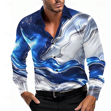 Per uomo Geometrico Sfumatura Onde Camicia in raso Camicia elegante Camicia con Bottoni Manica Lunga Moda Casual Vacanza Ferie Estate Primavera Autunno Collo ripiegato Camicie con Colletto Stampa 3D