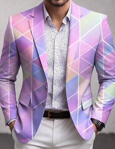 Per uomo Geometrico Giacca blazer Cappotto Confortevole Traspirante Artistico Casual Quotidiano Feste Stampa 3D Bottoni Multi-tasche Primavera Autunno & Inverno Dentellato Manica Lunga Rosso Viola