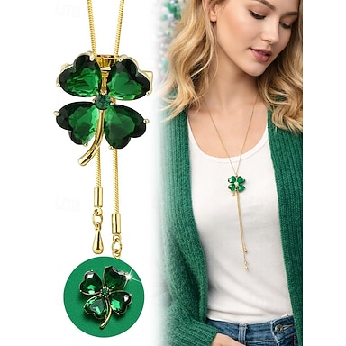 ciondolo da donna in lega verde a forma di trifoglio, collana convertibile o spilla, perfetto per il giorno di San Patrizio e per l'uso quotidiano