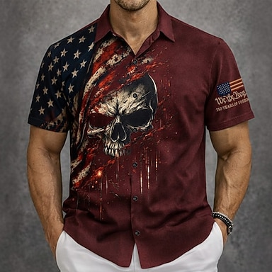 Per uomo 4 luglio, 250° anniversario degli Stati Uniti Aquila Bandiera degli Stati Uniti Camicia Camicia con Bottoni Manica Corta Vintage Retrò All'aperto Ferie Estate Primavera Collo ripiegato