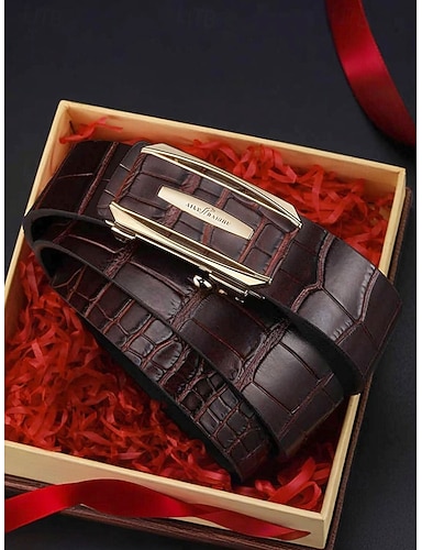 Cintura da uomo in vera pelle con fibbia automatica e cricchetto - classico motivo coccodrillo, stile elegante, adatta per matrimoni, affari e occasioni formali