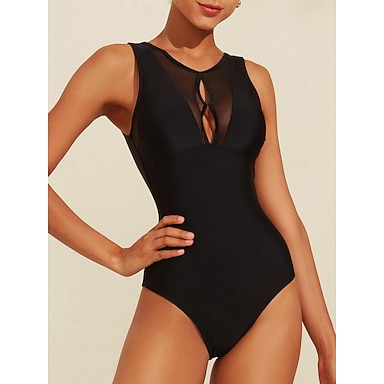 Per donna Costumi da bagno Un pezzo Costume da bagno Strappato Tinta unita / tinta unita Nero Il giro Costumi da bagno Stile da spiaggia