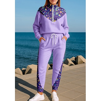 Set di tuta sportiva donna 2 pezzi felpa pantaloni da tuta sportivi set jogger pantaloni tuta a lungo maniche girocollo grafica astratta stampa cordoncino casual all'aperto rosa blu verde