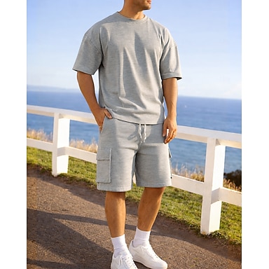 Per uomo Jacquard Tuta Da Ginnastica Maglietta e pantaloncini Impostato Set di abiti Girocollo Esterno Giornaliero Sport Tasche A cordoncino 2 pezzi Liscio Nero Cachi Verde militare Poliestere