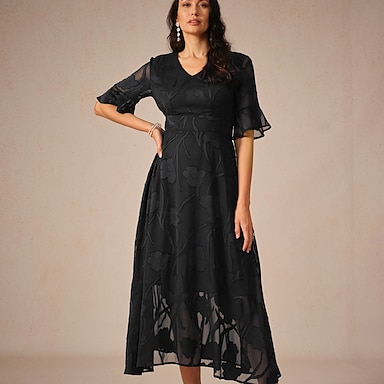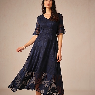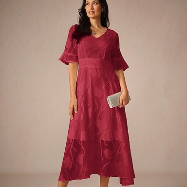 Linea ad A Lunghezza Tè Vestito da Festa Abito da Cocktail Abito da invitata a nozze Abito da cerimonia per signora Manica 3/4 Scollo a V Elegante Formale Serata Formale Ricevimento di matrimonio