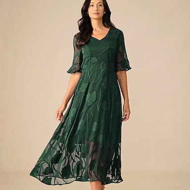 Linea ad A Lunghezza alla caviglia Vestito da Festa Abito da Cocktail Abito da invitata a nozze Abito da cerimonia per signora Mezza Manica Girocollo Elegante Vintage Formale Serata Formale