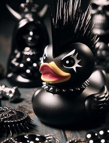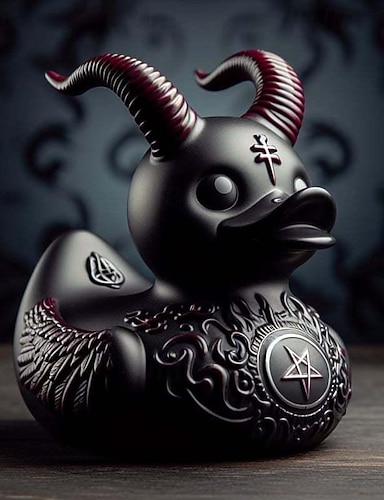 Collezione di decorazioni in resina per statue di papere, anatre sataniche, punk, gotiche e rock'n'roll: aggiunte perfette per la signora. L'esposizione eccentrica e dal tema oscuro di Valentina