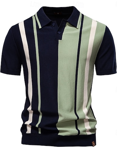 Per uomo Polo Maglione polo lavorato a maglia Formale Lavoro Collo ripiegato Manica Corta A righe Strisce verticali Righe Bottoni Primavera Nero Cachi Polo