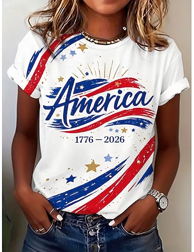 Giorno dell'Indipendenza Anniversary Americano Maglietta Patriottica da Donna Stampa Grafica Bandiera Lettera Elegante Classica Casual Manica Corta Collo Rotondo Regolare Top