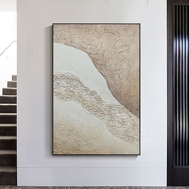 dipinto astratto bianco originale dipinto texture beige bianco arte murale astratta dipinto astratto minimalista arte moderna arte soggiorno cornice tesa pronta da appendere