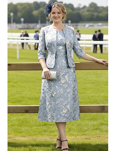 Due Pezzi Linea ad A Lunghezza Tè Abito da invitata a nozze Abito da cerimonia per signora Senza Maniche Manica 3/4 Girocollo Collo quadrato Elegante Semplice Formale Derby del Kentucky Semi-Formale