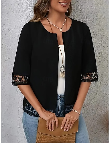 Per donna Giacca Casual Confortevole Traspirante Pizzo Patchwork Casual Semplice Casuale Vacanza Streetwear Abbigliamento quotidiano Aperto davanti Regolare Girocollo Vestibilità regolare Manica 3/4