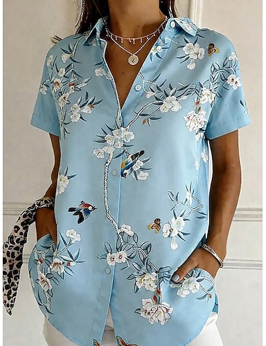Per donna Camicia Camicia button-down Camicia casual Top estivi Bottoni Stampato Floreale Grafico Vintage Elegante Moderno Manica Corta Colletto a Camicia Top lunghi Quotidiano Verde chiaro Viola