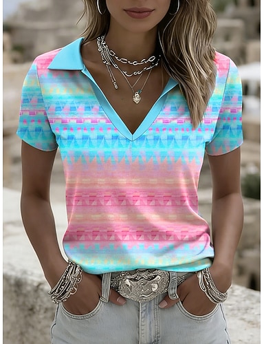 Per donna Maglietta Blocco di colore Stampato Grafico Geometrico Elegante Classico Casual Manica Corta Colletto Polo Top Regolari Casuale Quotidiano Sportivo Blu Rosa Viola Verde Estate Primavera