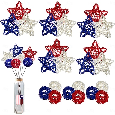 24 pezzi di decorazioni a sfera con stelle per il 4 luglio, decorazioni fai da te per la casa del 4 luglio, giorno dell'indipendenza, decorazioni per vasi e ciotole, decorazioni da tavolo