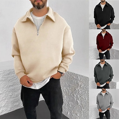Per uomo Maglia Maglione Felpa con zip corta Rosso bordeaux Nero Blu marino Grigio scuro Beige Mezza zip Semplice Sport & Outdoor Casuale Quotidiano Streetwear Essenziale Casual Autunno Inverno