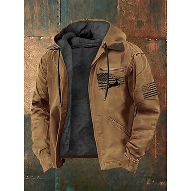 Per uomo Felpa con cappuccio a zip intera Giacca in Pile Felpa con cappuccio in pile Nero Marrone Con Cappuccio Croce Bandiera Americana Tasca Stampato Casuale Quotidiano Uscire Poliestere Streetwear