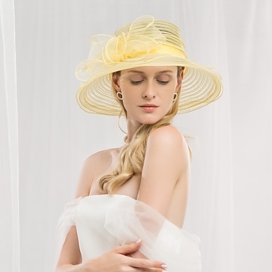 berretto Poliestere Organza Cappello da sole Matrimonio Con Fiocco Copricapo Copricapo