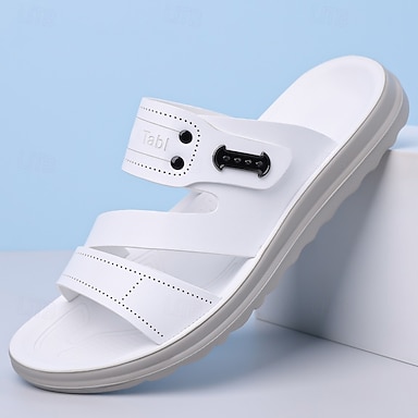 Sandali da uomo bianchi a ciabatta, a punta aperta, casual, con cinturino regolabile, comodi sandali estivi per vacanze al mare, resort e piscina, viaggi, casa, tempo libero all'aperto e stile vacanziero di tutti i giorni.