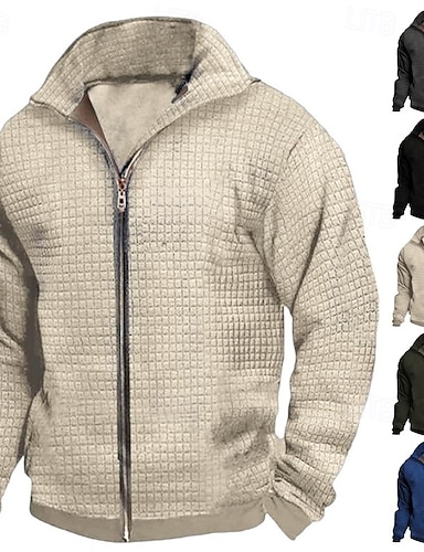 Per uomo Giacca a nido d'ape Giacca Giacca Casual All'aperto Vacanza Caldo Puro Primavera Autunno Inverno Semplice Moda Streetwear Bavero Regolare Nero Bianco Blu reale Cachi Grigio Giacca