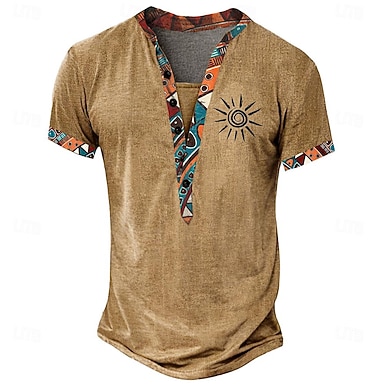 Per uomo Tribale Maglietta Maglia Henley Manica Corta Designer Essenziale Stile Boho All'aperto Casuale Quotidiano Estate Blu lago Verde chiaro Blu chiaro Cachi Henley Maglietta Henley
