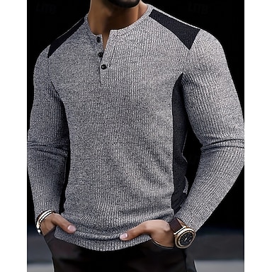 Per uomo Maglietta Maglia Henley Camicia a Maniche Lunghe Manica Lunga Henley Autunno Inverno Blocco di colori Moda Streetwear Tempo libero Bottoni Vacanza Sport & Outdoor Casuale Grigio Maglietta