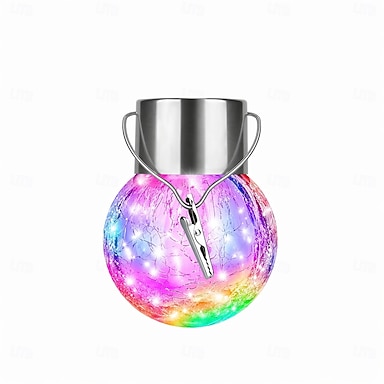1 confezione di luci solari da esterno da appendere, luci solari in vetro craquelé impermeabili a LED decorative a sfera, luci a globo a energia solare per albero con gancio per giardino, cortile,