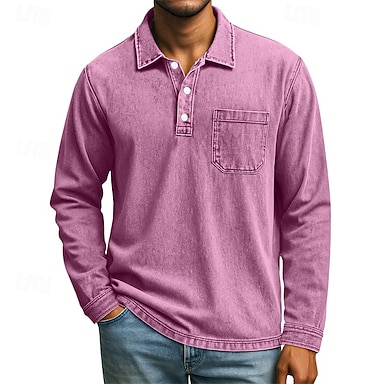 Per uomo Maglia da golf Polo da Golf Lavoro Casuale Bavero Manica Lunga Essenziale Moderno Semplice Tasca Bottoni Primavera Autunno Vestibilità regolare Verde scuro Nero Verde Chiaro Blu scuro Rosa
