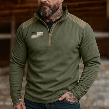 Per uomo Maglia Felpa con zip Felpa in pile Tattico Verde mimetico Colletto Mao Mimetico Tasche con cerniera Sport & Outdoor Casuale Quotidiano Vintage Streetwear Militare Primavera Autunno