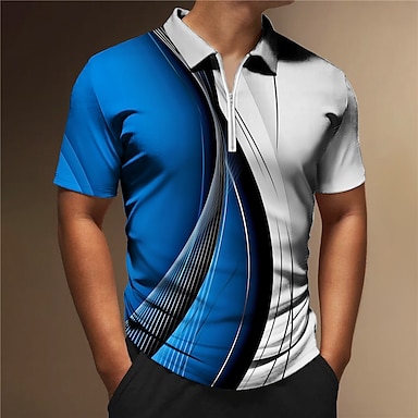 Per uomo Geometrico Polo con zip Maglia da golf Manica Corta Magliette polo Camicie con Colletto Business Casual Abbigliamento da vacanza Abbigliamento Formale Abbigliamento da festa Stampa 3D Polo