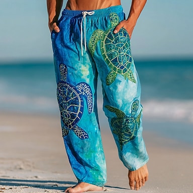 Per uomo Tartarughe Creature marine Pantaloni Pantaloni casual Pantaloni Larghi Misura del girovita medio Hawaiano All'aperto Vacanza Abbigliamento mare Coulisse elastica in vita Pantaloni tipo lino