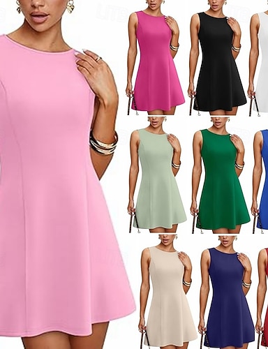 Per donna Mini Abito Abito Estivo Casual Quotidiano Vestibilità regolare Semplice Senza Maniche Girocollo Bianco Rosa Rosso Verde Estate Primavera