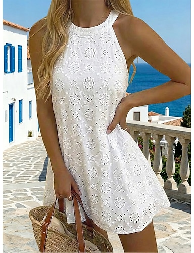 Per donna Mini Abito Abito in Pizzo Abito Bianco Vestito Casual Moda Moderno Abito sexy All'aperto Vacanza Feste Taglia piccola Floreale Senza Maniche All'americana Bianco Estate Primavera