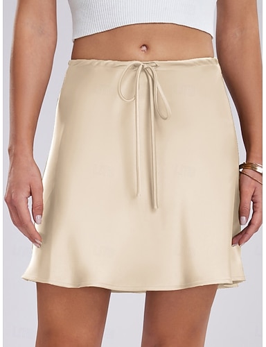Per donna Gonne in raso Moda Casual Mini Vita Alta Gonne Semplice Coulisse Micro-elastico Quotidiano Streetwear Vinaccia Verde salvia Nero Oro Estate Raso Poliestere