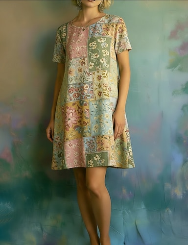 Per donna Mini abito Vestito Casual Vestito T-Shirt Vintage Quotidiano All'aperto Vacanza Vestibilità regolare Floreale Manica Corta Girocollo Verde Estate Primavera