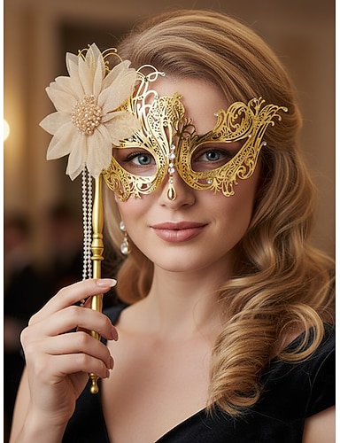 Maschera da donna in filigrana d'oro con dettagli di fiori e perle per feste di Natale, balli & ballo studentesco