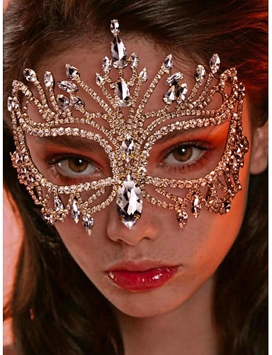 Maschera da ballo in strass di cristallo da donna, maschera di lusso con gemme dorate per donna, elegante accessorio per costumi per balli in maschera, feste ed eventi