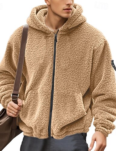 Per uomo Cappotto Invernale Cappotto Teddy Giacca Casual All'aperto Casuale Calore Termico Tasca Cerniera completa Autunno Inverno Plaid Streetwear Sport e Outdoor Con Cappuccio Regolare Grigio scuro