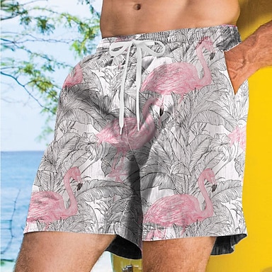 Per uomo Fenicottero Uccello Costumi da bagno Costumi da bagno Pantaloncini da bagno Pantaloncini da Surf Misura del girovita medio Hawaiano Vacanza al Mare Tasche Laterali fodera in rete Coulisse