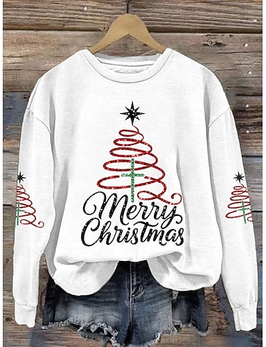 Per donna Felpe Grafico Albero di Natale Caldo Classico Casual Manica Lunga Girocollo Top Regolari Streetwear Abbigliamento Quotidiano Casuale Stampato Nero Bianco Verde Primavera Autunno Inverno