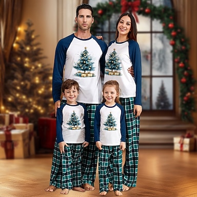 Alberi di Natale Pigiama natalizio di famiglia Pigiami e camicie da notte Per uomo Per donna Ragazzi Ragazze Abiti coordinati per la famiglia Dolce Plaid Fantasia/motivo Adulti Bambini Natale
