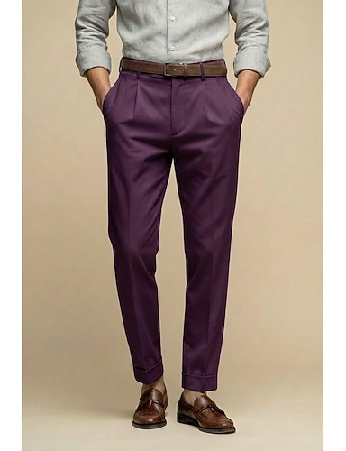 Uomo Cotone Lino Pantaloni Eleganti Pantaloni casual Casuale Affari Elegante Moda Formale Nero Borgogna Blu marino scuro Primavera & Estate Pantaloni Tinta unica Vestibilità su misura Lungo Inelastico