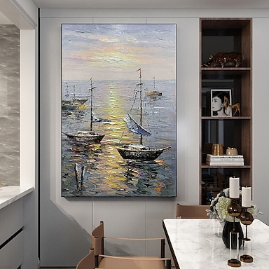 pittura a olio fatta a mano su tela decorazione di arte della parete barca a vela dorata e grigia per la decorazione domestica pittura arrotolata senza telaio non stirata