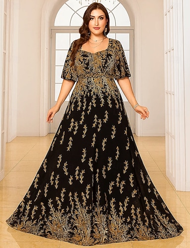 Linea ad A Lunghezza al pavimento Abito da invitata a nozze Abito Formale Abito da sera Abito da cerimonia per signora Manica Corta Collo quadrato Elegante Vintage Lussuoso Ferie Serata Formale
