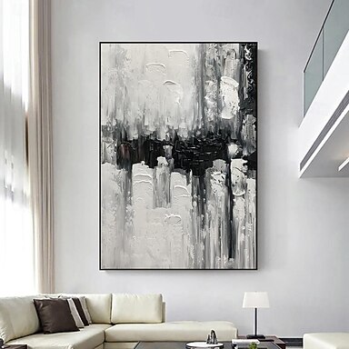 dipinto a olio fatto a mano su tela decorazione murale astratta in bianco e nero texture arte per arredamento casa dipinto arrotolato senza cornice non allungato