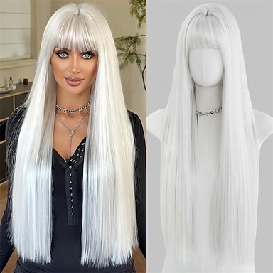 parrucca bianca lunga da donna, 28 pollici - ideale per Halloween, cosplay, feste in maschera e look fantasy