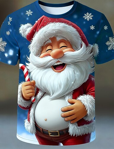 Natale Per uomo Babbo Natale Maglietta Manica Corta maglietta Stampa 3D Girocollo Camicia Quotidiano Designer Artistico Vacanza Feste Streetwear Blu Rosso Viola Tutte le stagioni Abbigliamento S M L